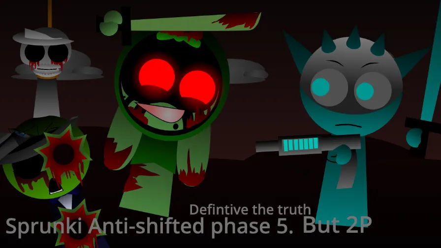 Sprunki Anti-Shifted Phase 5 But 2P is more than just a horror mod; it is an adrenaline rush. It takes the "Anti" concept—which should be safe—and twists it into a weaponized, paranoid nightmare. With its unique "Watcher" background, armed characters, and screen-shattering bass, it offers a fresh and terrifying take on the Incredibox formula.